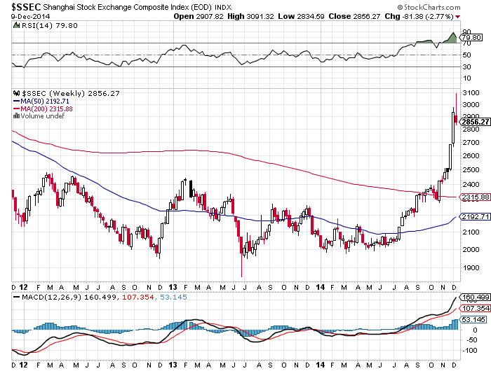 Take a look at the technical analysis of both Shanghai and S&P 500. Shanghai peaked in October 12, 2007, at 5,903. Now it is trading just below 3,000, which means this is probably just the beginning of a new bullish trend. S&P 500 is at the all time high.