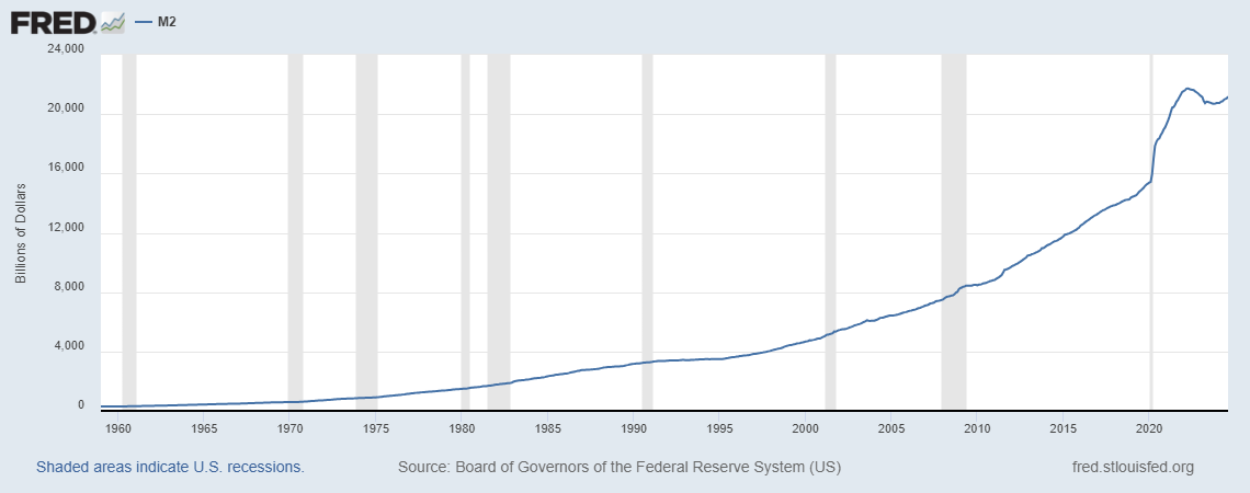 As of July 2024, the M1 money supply (monthly supply) in the United States stood at approximately 18 trillion dollars, marking a significant decrease from the previous year. This decline followed a notable contraction in the M1 money supply during the latter half of 2022 and the first six months of 2023.