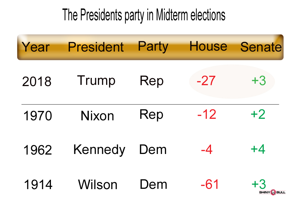 To those who belive that Mr Trump was a big loser on Tuesday, have a listen to this; Obama lost -63 seats in the house and -6 seats in the senate in his first midterm election. That`s -69 seats.