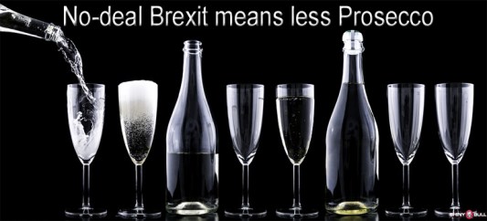 A no deal means less Italian Prosecco for the U.K. Britons bought a record 164 million bottles of champagne and sparkling wine last year, but the effects of Brexit has hit Prosecco long time ago. For the first time in over a decade, exports of Prosecco to the U.K are slowing.