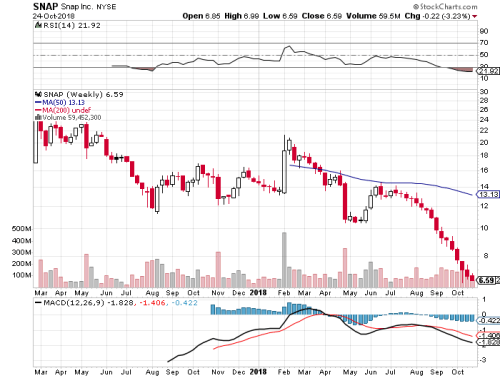 Snapchat was a big bubble when it went public in March last year. It went straight up to about $27, but the story has so far been a disaster. The stock has plummeted. It closed at $6,59 after the bell on Wednesday, down -3,37 percent.